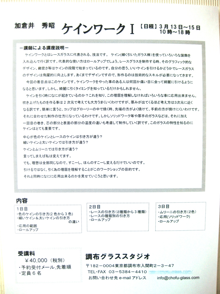 | 予約方法 | 電話:03-5384-4410 / メール:info@chofu-glass.com |